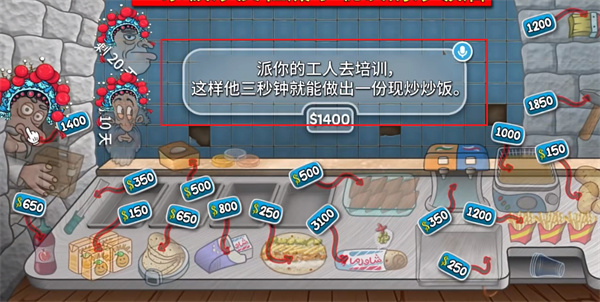 4、進入到外賣制作界面之后,玩家將需要解鎖各種不同的美食制作設備,并領取自己的任務;
