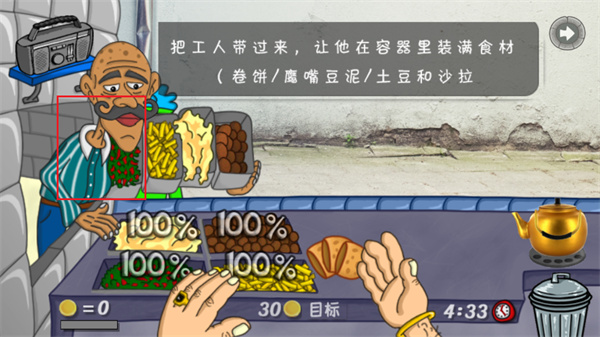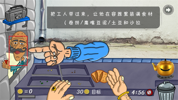 4、召喚出來工人后,需要從工人的手中進(jìn)行小料的取用,將不同的小料放置到不同的盤子中,需要填滿盤子;