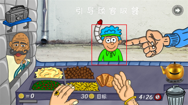 6、點(diǎn)擊客人的位置,以進(jìn)行客人食物的制作,并快速的將食物提供給客人。
