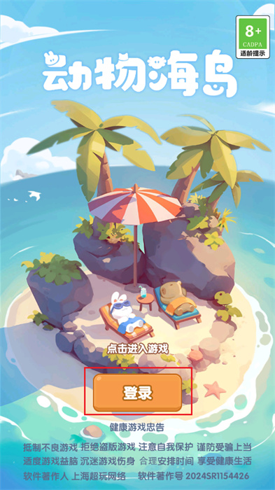 1、進入到游戲的場景內之后,玩家將需要點擊屏幕之中的黃色【登錄】按鈕,以進入到游戲中;