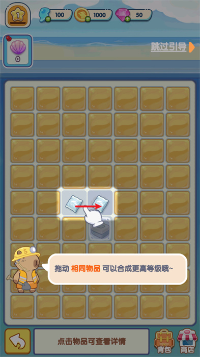 6、此時玩家將需要拖動屏幕上的相同物體來進行合成,合成任務完成后將可以獲取一個貝殼。