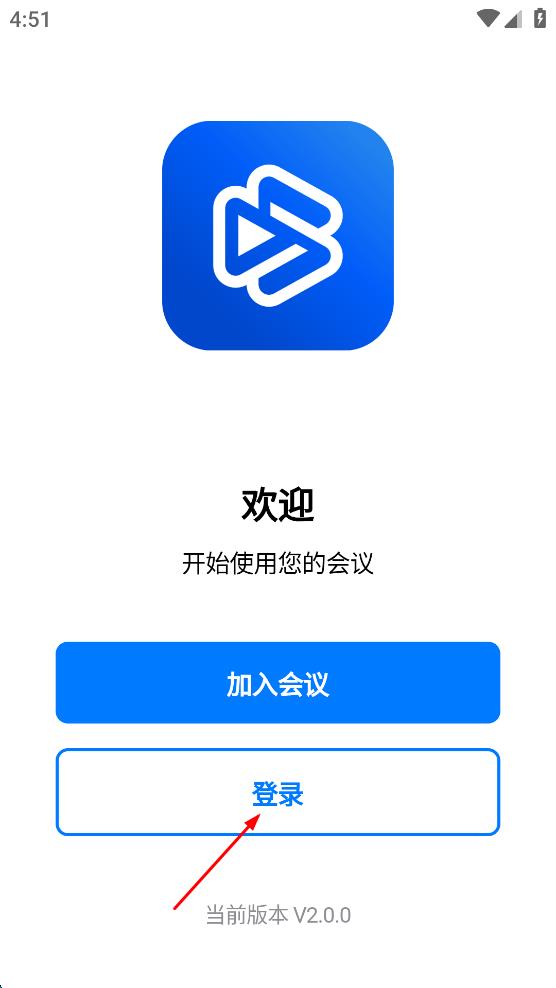 2、進(jìn)入顯示“歡迎 開始使用您的會議”的頁面,在該頁面中找到“登錄”按鈕,點(diǎn)擊“登錄”按鈕,進(jìn)入用戶登錄頁面。