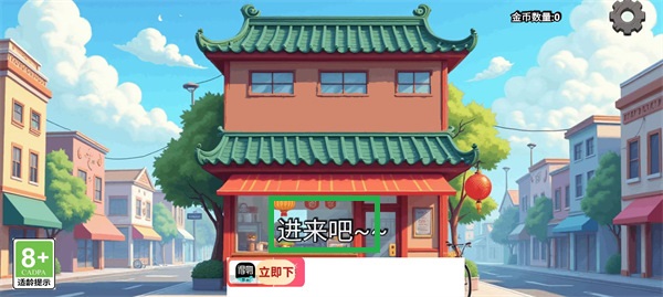 2、隨后會進(jìn)入到一個充滿現(xiàn)代化的城市店鋪門口,點擊其中的【進(jìn)來吧】就可以進(jìn)入游戲開啟經(jīng)營;