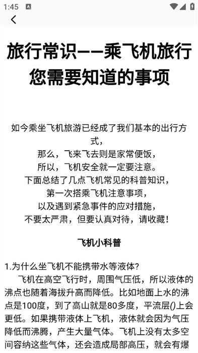 5、乘坐飛機(jī)詳細(xì)的應(yīng)急指南幫助用戶(hù)們解決自己在乘坐飛機(jī)的時(shí)候遇到的問(wèn)題;