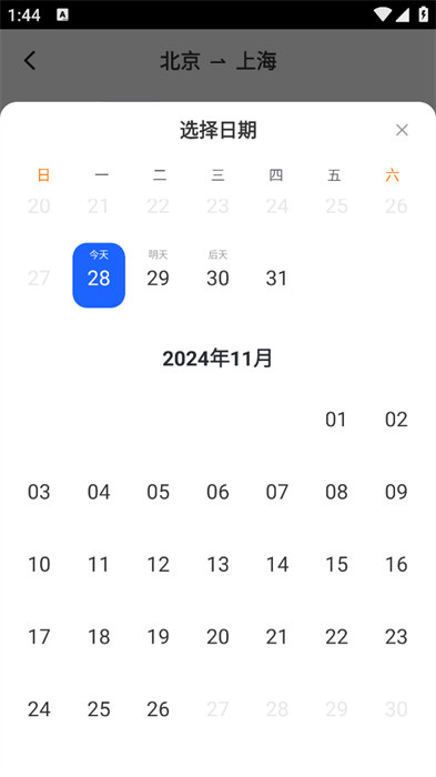 3、還可以選擇自己要出行的日期去進(jìn)行機(jī)票的查看;