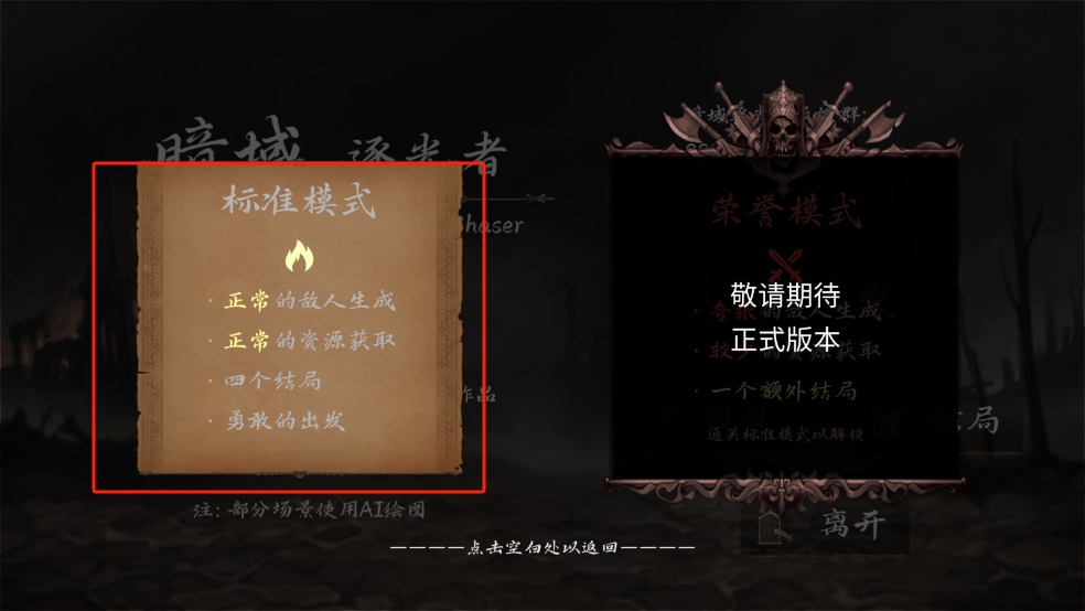 4、現(xiàn)在該游戲只有標(biāo)準(zhǔn)模式,可以看到標(biāo)準(zhǔn)模式是正常的敵人生成和資源獲取,并有四個(gè)結(jié)局那么開(kāi)始吧。