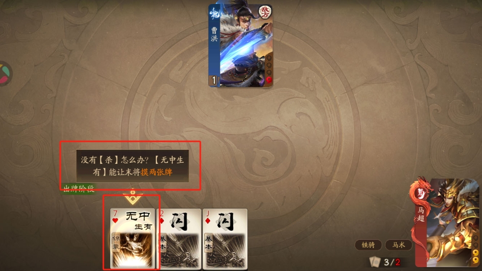 3、如果遇到自己的卡牌沒有一張攻擊的卡牌怎么辦,可以利用無中生有卡牌摸上隨機(jī)兩張牌;