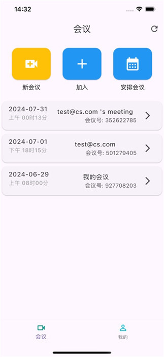2、隨后,進(jìn)入到首頁可以直接添加新的會議,還能在下方看到之前的會議記錄;