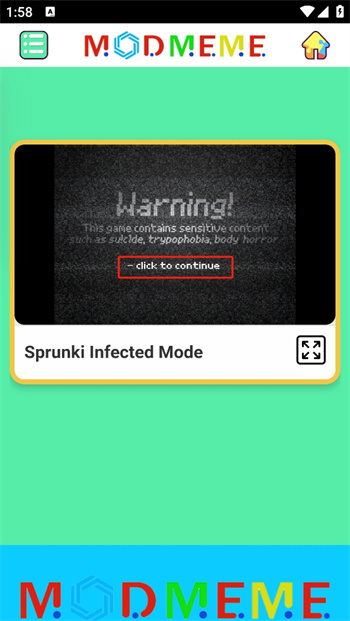 1、進(jìn)入充滿被彩色呈現(xiàn)出的卡通世界中,點擊這個模組之上的旗幟標(biāo)志,正式開啟自己在這里的恐怖;