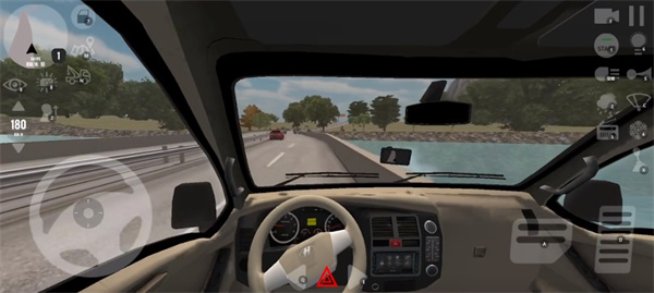 2、左右滑動方向盤在道路之上行駛,點擊右邊的油門與剎車靈活自由的點擊操控,充滿現(xiàn)實環(huán)境中道路駕駛,掌管好每一個道行駛;
