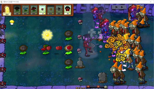 2、合理利用道具或者是植物,清楚地圖上的墓碑障礙,這樣就可以獲得更多的位置種植植物去戰(zhàn)斗;