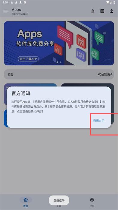 2、隨后進入到軟件內(nèi)部,這里需要點擊彈窗【我明白了】,如下圖所示;