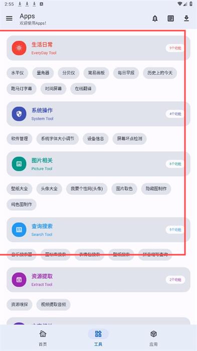 3、接著,大家可以切換到【工具】頁面,這里將軟件專門進行了分類整理,篩選起來更高效;