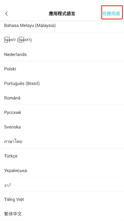 3、找到我們想要選擇的應(yīng)用語言后,點(diǎn)擊并點(diǎn)擊應(yīng)用的確認(rèn)后就可以進(jìn)行語言更換;