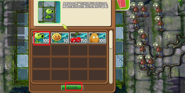 5、首先需要進(jìn)行戰(zhàn)斗型植物的選擇,選擇完畢之后,點(diǎn)擊【進(jìn)入征程】按鈕;