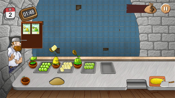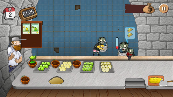 3、準備好一切的材料,這樣才能應(yīng)對后面的所有僵尸顧客,有的顧客胃口很大,需要兩個卷餅,需要及時的交給對方;