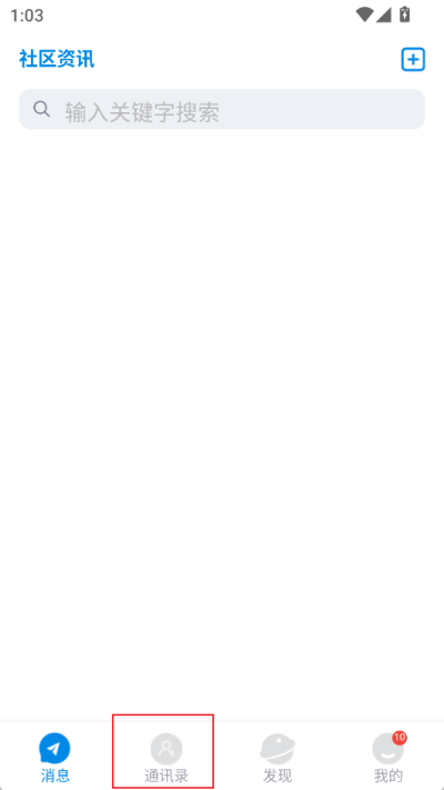 1、首先打開下載好的魅信APP,進(jìn)入軟件后點(diǎn)擊界面下方的【通訊錄】選項(xiàng);