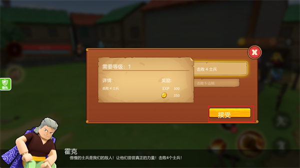 2、第一個(gè)任務(wù)目標(biāo)為“擊敗4士兵”,傲慢的士兵是我們的敵人,讓他們嘗嘗真正的力量;