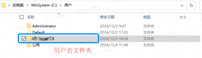 ②第二步,找到您的用戶名文件夾,文件夾的名字是您登錄電腦時(shí)使用的用戶名;