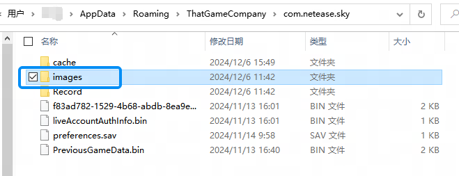 ③第三步,退回到上一級(jí)com.netease.sky后,打開(kāi)images,即可找到照片。