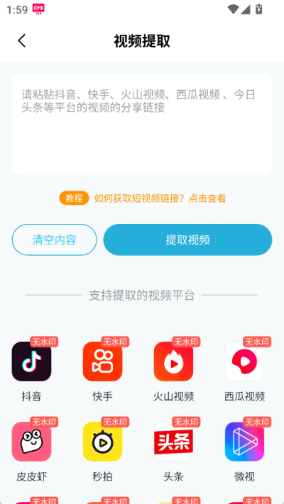 視頻一鍵提取功能支持眾多短視頻平臺,復制分享鏈接,粘貼該鏈接就可以提取視頻,保存至手機相冊。