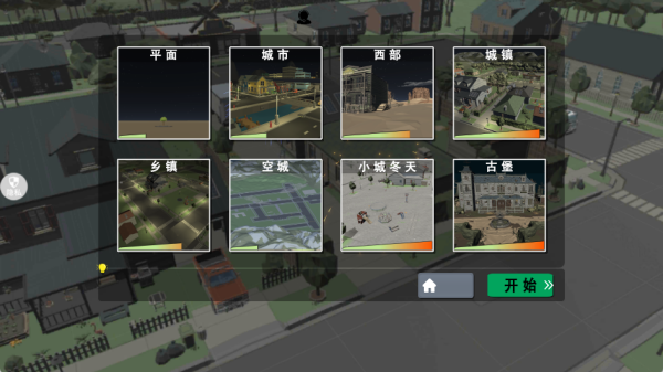 2、進入游戲模式后,然后蓄奴則想要體驗的游戲地圖,這里為玩家提供了平面、城市、西部、城鎮(zhèn)等多個地圖選擇,選擇自己感興趣的地圖,然后點擊開始;