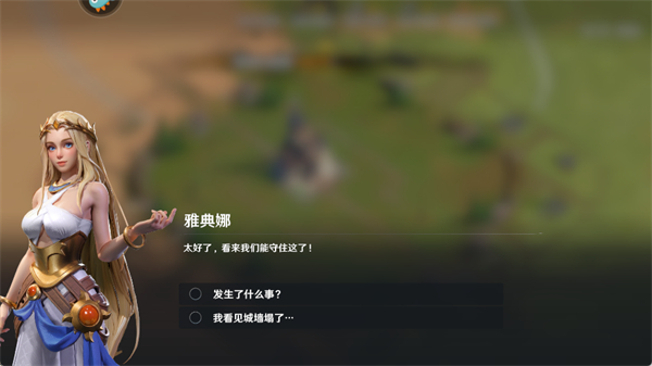 3、進(jìn)入城鎮(zhèn)地區(qū)后,開局會(huì)有一段劇情對(duì)話,從而讓玩家了解自己的城鎮(zhèn)發(fā)生了什么;