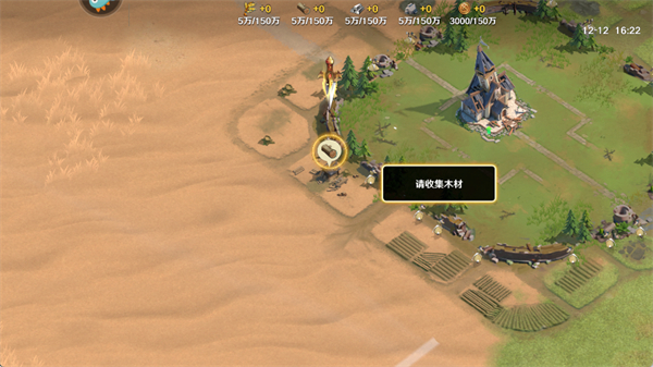 4、通過對(duì)話了解我們的城鎮(zhèn)被攻擊, 現(xiàn)在需要收集木材修復(fù)城墻,點(diǎn)擊界面上的收集木材選項(xiàng);