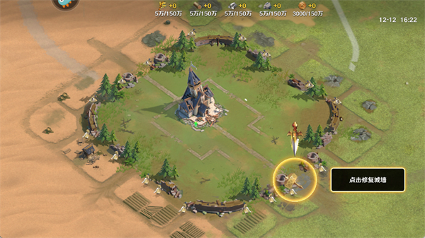 5、收集完木材后,點(diǎn)擊修復(fù)城墻,城墻可以抵御外來敵人的進(jìn)攻;