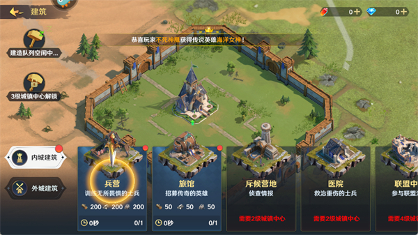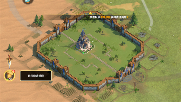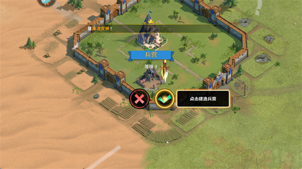 8、然后再城池中選擇合適的位置建造兵營,之后玩家只要跟隨任務(wù)引導(dǎo)一步一步的發(fā)展即可,不斷壯大自己的城池和兵力,擊敗更多的對(duì)手。