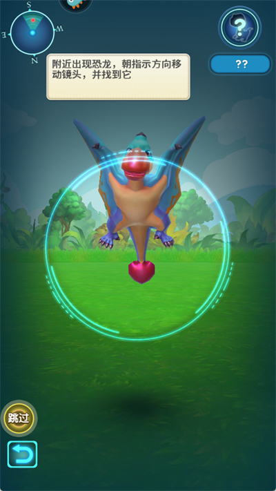 4、當你發(fā)現(xiàn)恐龍后,可以朝指示方向移動鏡頭并找到它,點擊一下即可進行捕捉;
