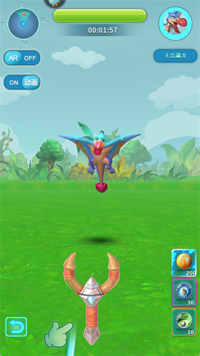 5、滑動下方的彈弓選項即可瞄準恐龍,將恐龍的血量打空后即可捕捉;