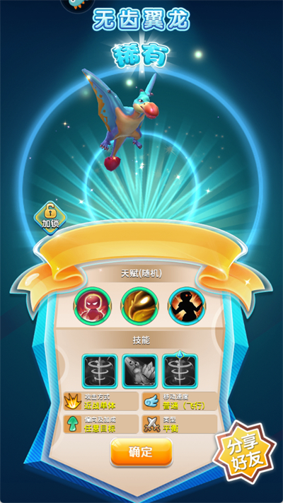 7、可以查看捕獲的恐龍屬性,每個恐龍還有獨特的技能和屬性,更多稀有恐龍等你來捕獲。