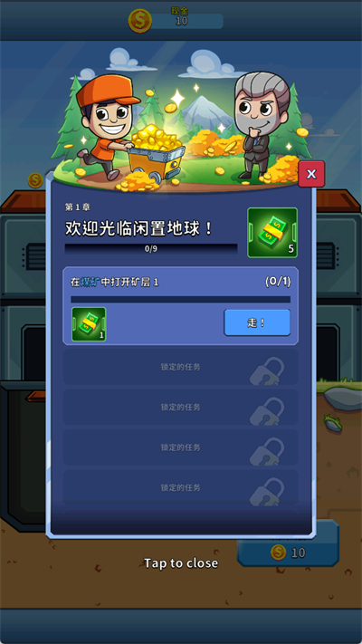 1、首先打開采礦大亨手游,進(jìn)入游戲后點(diǎn)擊左上角的任務(wù)選項(xiàng);