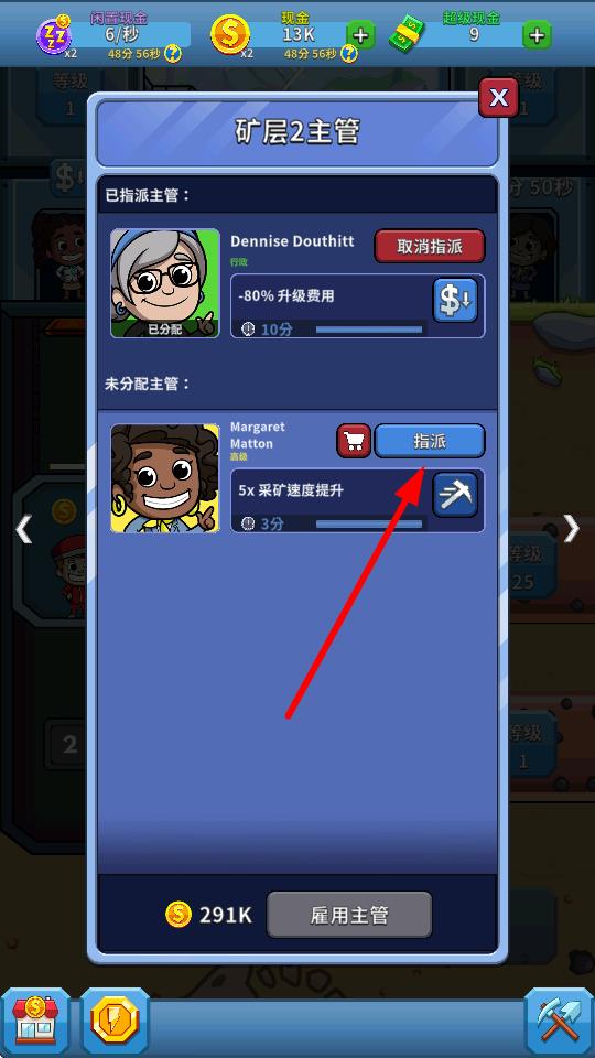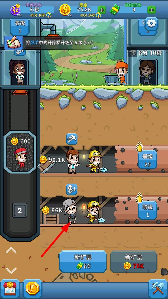 1、進(jìn)入游戲后關(guān)注屏幕上方現(xiàn)金,接著在礦層中找到想要更換礦工,點(diǎn)擊進(jìn)行更換。