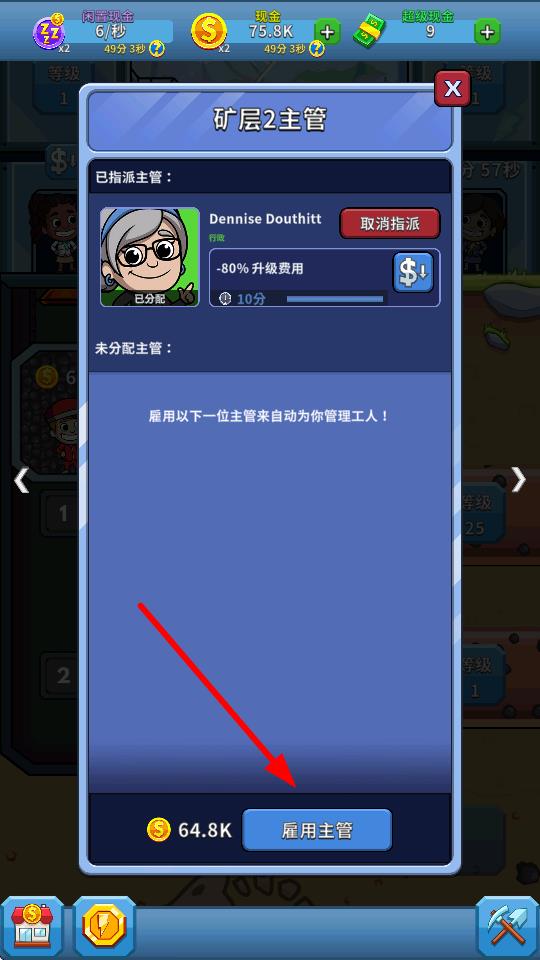 2、點(diǎn)擊想要更換礦工的位置后花費(fèi)金幣點(diǎn)擊雇用主管按鈕,不喜歡的需要花費(fèi)金幣多次雇傭。