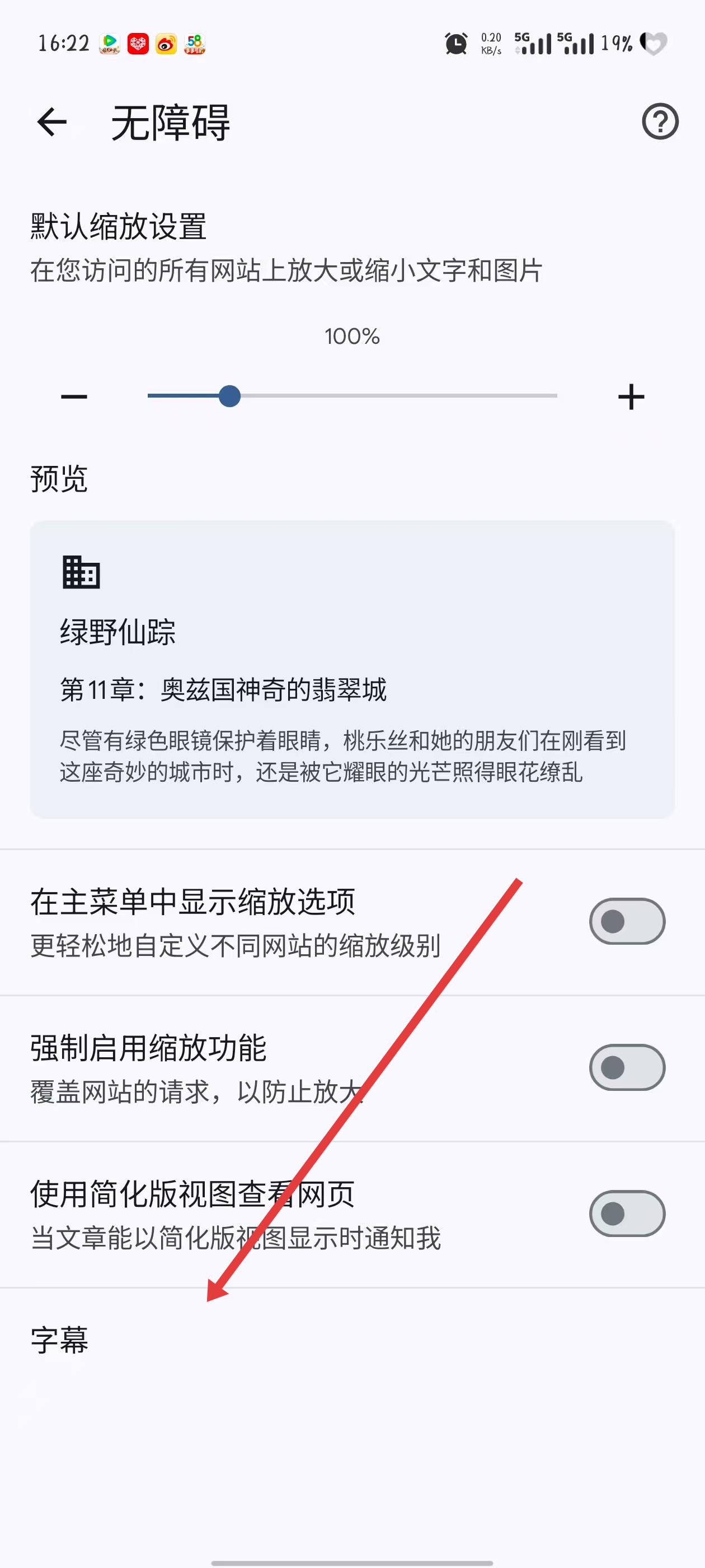 2、在無障礙設(shè)置中,找到并點(diǎn)擊字幕選項(xiàng)。