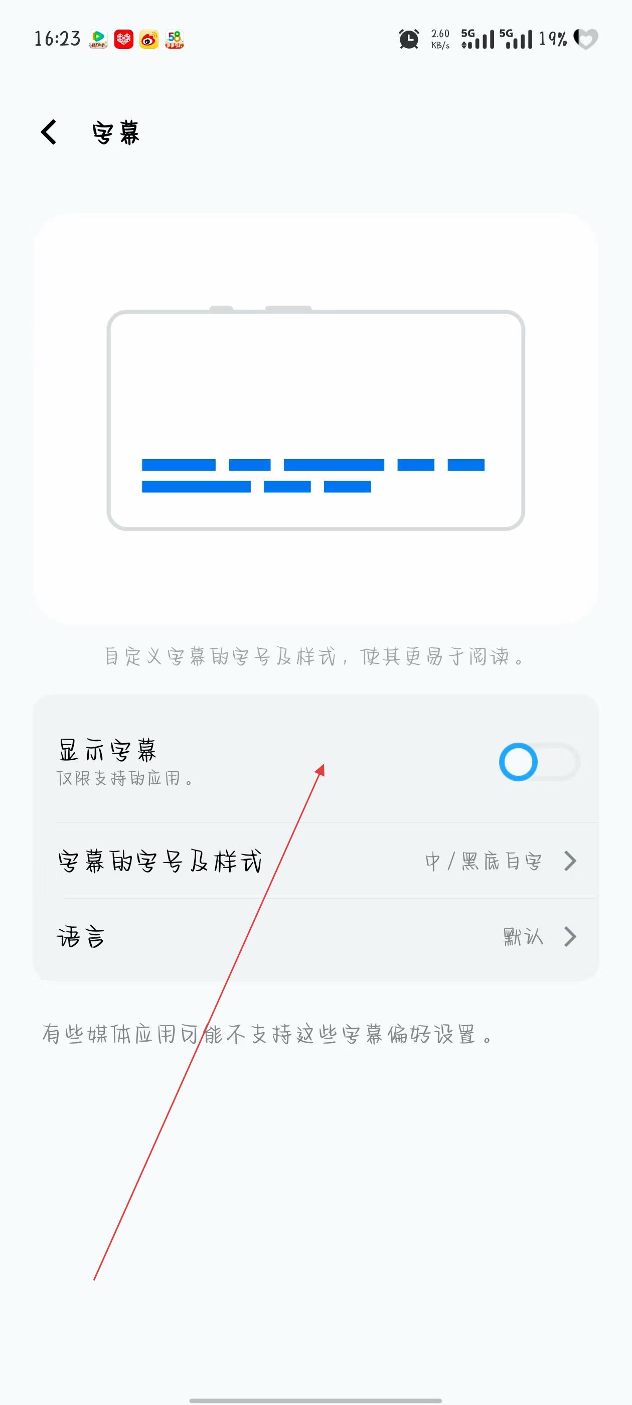 3、進(jìn)入字幕設(shè)置界面后 ,開啟顯示字幕開關(guān),還能對字幕的字號、樣式、語言等進(jìn)行個性化設(shè)置。