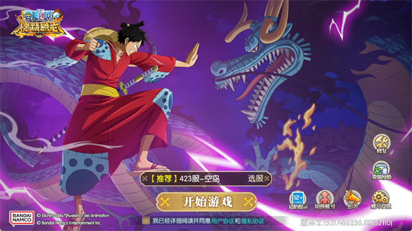 1、首先打開下載好的航海王燃燒意志手游,進(jìn)入游戲后選擇想要前往的游戲大區(qū),點(diǎn)擊開始;