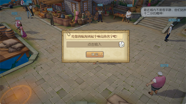 2、進(jìn)入游戲后先給自己的航海團(tuán)起一個(gè)名字,輸入昵稱后點(diǎn)擊確定開啟冒險(xiǎn);
