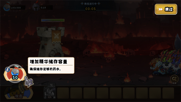 1、首先打開城堡戰(zhàn)爭(zhēng)防御游戲,進(jìn)入游戲后點(diǎn)擊左側(cè)按鈕,增加精華儲(chǔ)存容量,讓你能夠儲(chǔ)存更多的藥水;