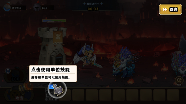 4、點(diǎn)擊單位上方的技能選項(xiàng)可以釋放技能,將里面的魔王全部擊敗后即可獲得游戲勝利。