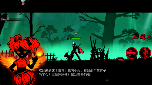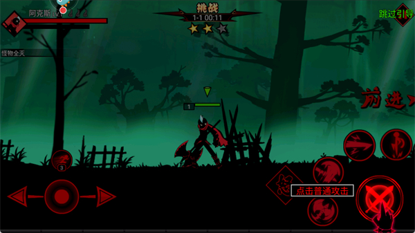 4、點擊右側(cè)的攻擊按鍵可以對敵人進行普通攻擊,也可以使用攻擊按鍵清除前方的障礙;