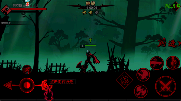 3、點擊左側(cè)的按鍵可以控制角色行走,點擊右鍵即可向右行走;