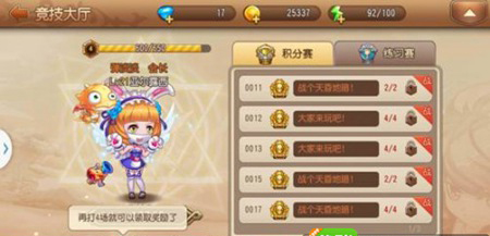 城堡,點擊進(jìn)入后就來了到競技場主界面,我們可以看到在競技場內(nèi)有兩種模式的比賽——積分賽和練習(xí)賽