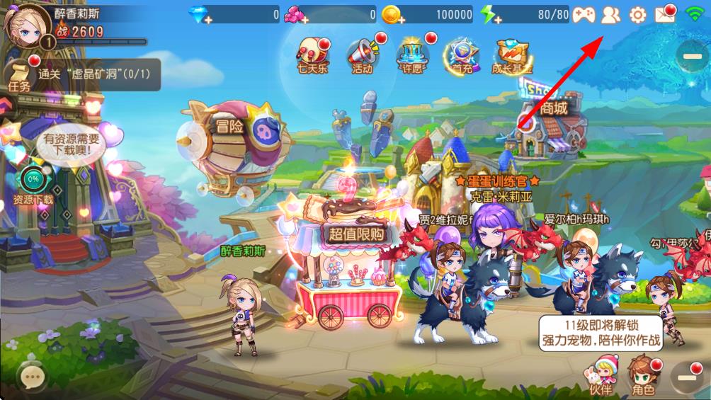 1、打開彈彈島游戲,進(jìn)入主界面后點擊界面右上角好友的圖標(biāo)進(jìn)入社交相關(guān)頁面。