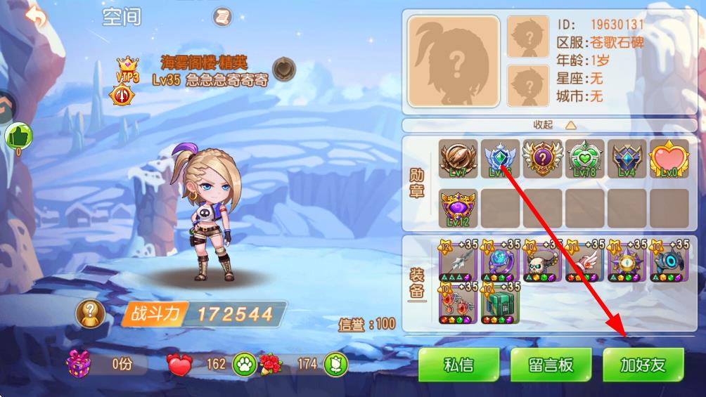 3、搜索出目標(biāo)玩家后直接進(jìn)入其空間界面,在界面右下方找到加好友按鈕,點擊該按鈕等待對方同意后,即可成功添加好友。