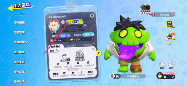 1、打開蛋仔派對(duì)游戲,進(jìn)入游戲主界面,點(diǎn)擊左上角自己的頭像,進(jìn)入個(gè)人信息頁(yè)面。