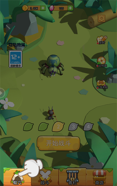1、首先打開安裝好的游戲,進(jìn)入游戲后點(diǎn)擊界面上的蟻穴選項(xiàng);