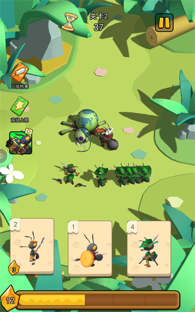 超大的游戲地圖設(shè)計,在地圖上隨意召喚螞蟻進(jìn)行作戰(zhàn),螞蟻出來后會自動開啟戰(zhàn)斗,讓你激情享受。